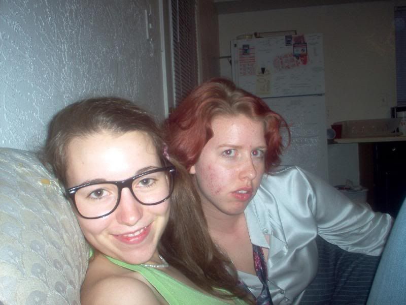 Last night was Matt Neff's much anticipated Eighties Party! We had a Robert Smith there, "Iceman" from Top Gun, Devo, and I was, naturally, Molly Ringwald. It was probably one of the best times I have ever had sober. Lady Hayden came, complete with side-ponytail and ripped jeans with pink tights underneath, and I think we had a darn near AWESOME time! Oh, and Alex and John are both in the Latin/Ballroom/Swing Dance class, so they taught me how to tango and rumba! And how can a night with the Safety Dance be any less than great anyway? ("Dancez!") Some guy named Milos danced stupid eighties dances with me, and you know how I love dancing. Anyway, a great night. Here's a tidbit of Hayden and I: